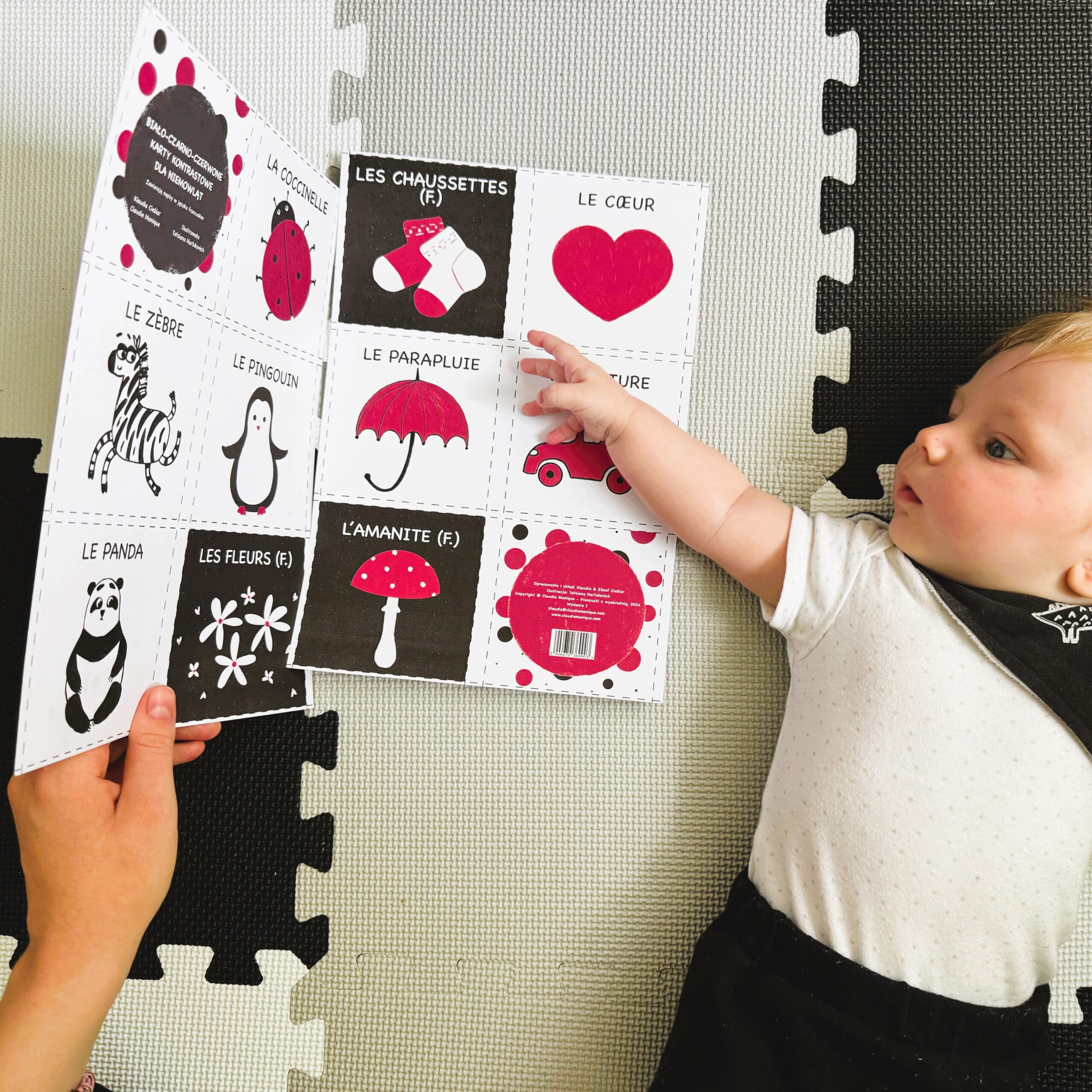 Obrazki zostały stworzone, by stymulować wzrok niemowlaka oraz zachęcać do ćwiczeń